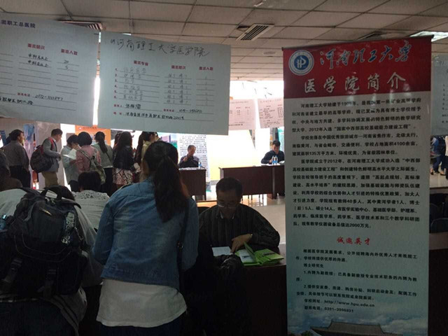 10月16日,2016届毕业生秋季医学专场招聘会在郑州大学大学生活动中心举行。本次招聘会有80余家用人单位到场,医华体会·(hth)体育副院长沈军生带队参加了本次招聘会。医华体会·(hth)体育根据人才引进计划,公布了涉及到临床医学、护理、基础医学、口腔、检验、药学等专业的需求人数及学历要求。学生对我院表达了浓厚的兴趣,吸引了来自沈阳药科大学、协和医科大学、郑州大学等知名院校的优秀毕业生。在详细了解应聘学生的专业水平基础上,向学生讲解了我院对高层次人才的优惠政策。现场井然有序,浓厚的气氛甚至吸引了许多研二的在校研究生前来咨询。