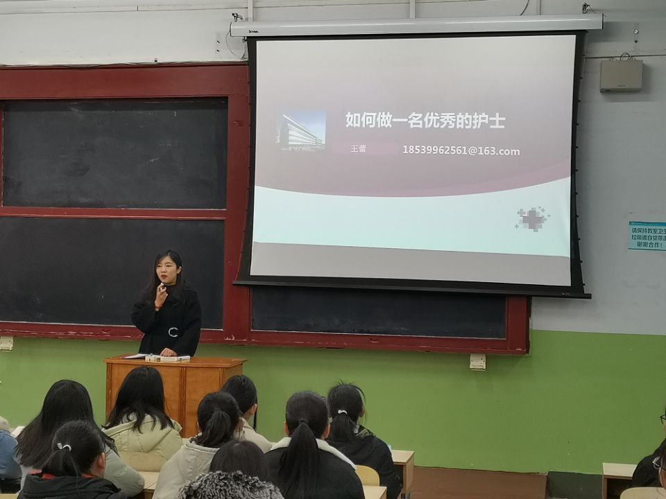 为了提升我院护理专业学生的学习兴趣,增强学生的职业责任感,1月3日下午3点,我院在北校区2206教室举行了“以如何做一名优秀的护士”为主题的护理专题讲座。此次讲座邀请了华中阜外医院骨科王蕾护士长主讲。护理专业近200名同学和护理系老师聆听了此次的精彩讲座。