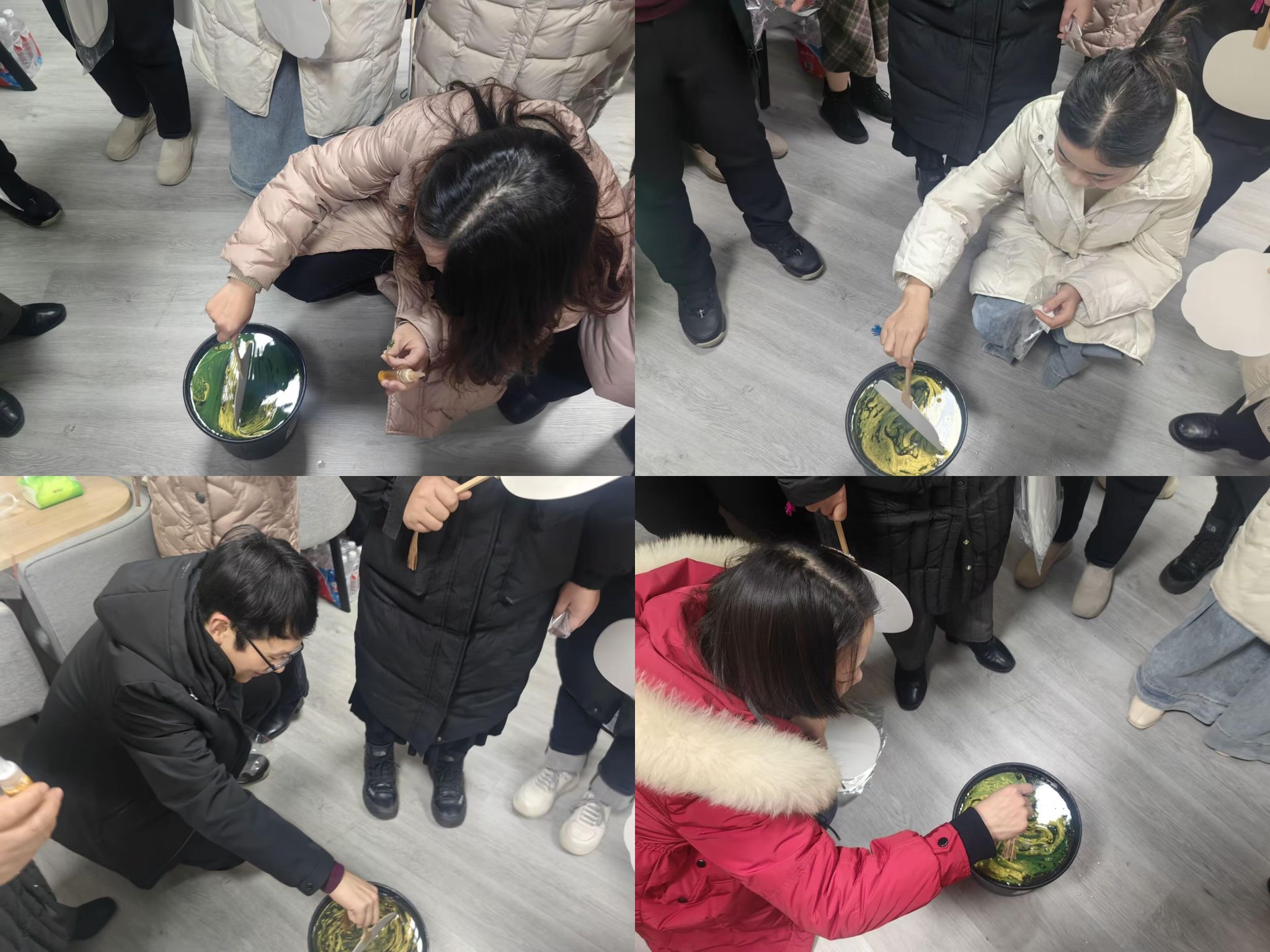 教职工们纷纷动手尝试,从漆料的调配、上色,再到扇子怎样入水,大家沉浸在创作的乐趣中,不时交流心得,现场气氛热烈而和谐。经过几个小时的精心制作,一把把独一无二的漆扇逐渐成形,它们不仅承载着冬日的温暖,更寄托了大家对美好生活的向往和对新一年的美好祝愿。